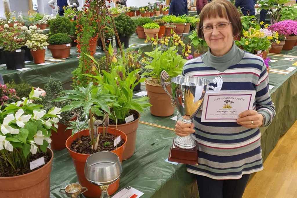 Diane has been visiting the Alps for over 40 years, and has specialised in growing alpine plants for over 20 years. She is a keen exhibitor and judge for the AGS. She has a wide range of plant interests, in particular hepaticas, cyclamen, bulbous plants and woodland plants which she grows in cold frames and in her shady garden in Wolverhampton.