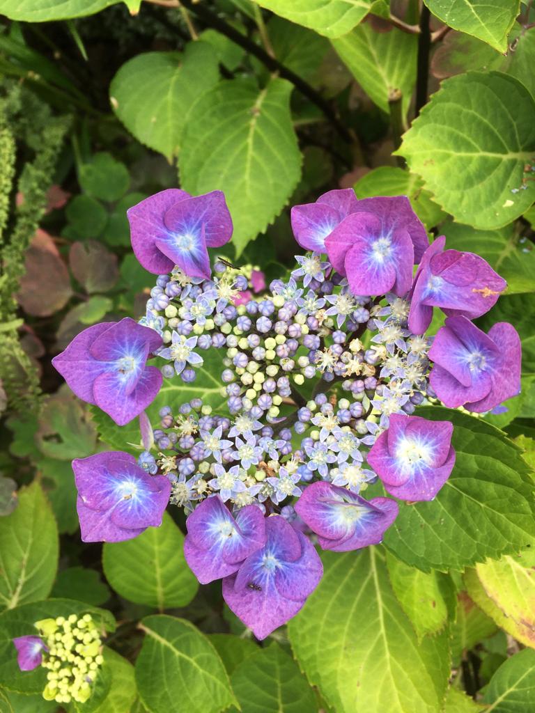 Hydrangea paniculata ”Kyushu”, in front of Calamagrostis brachytricha